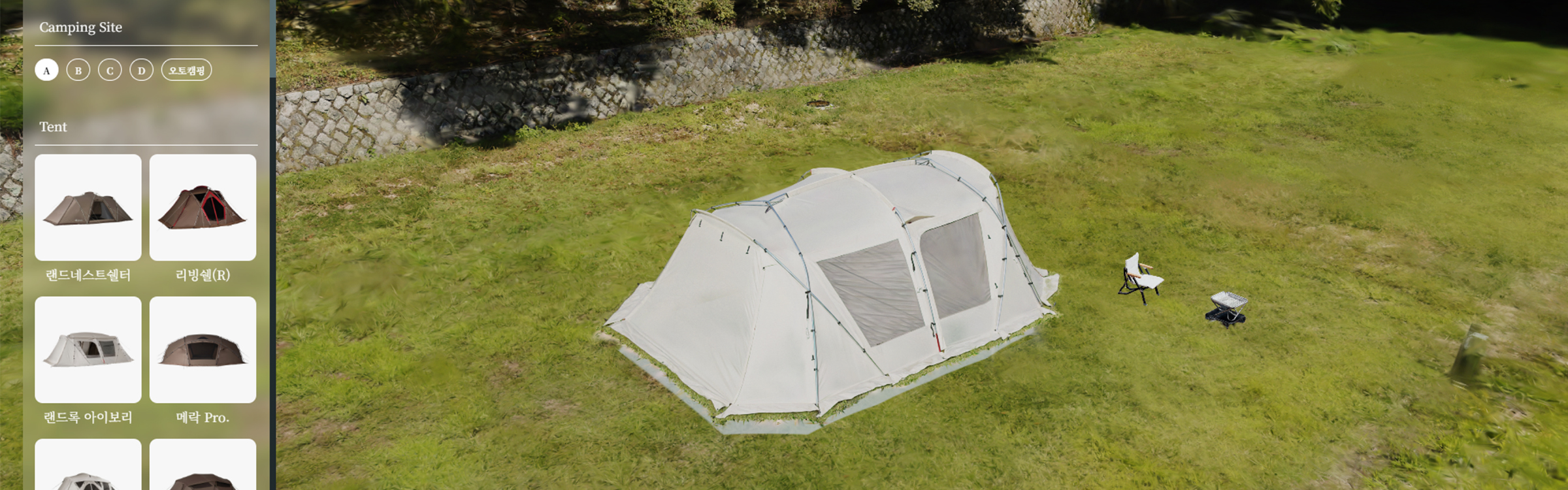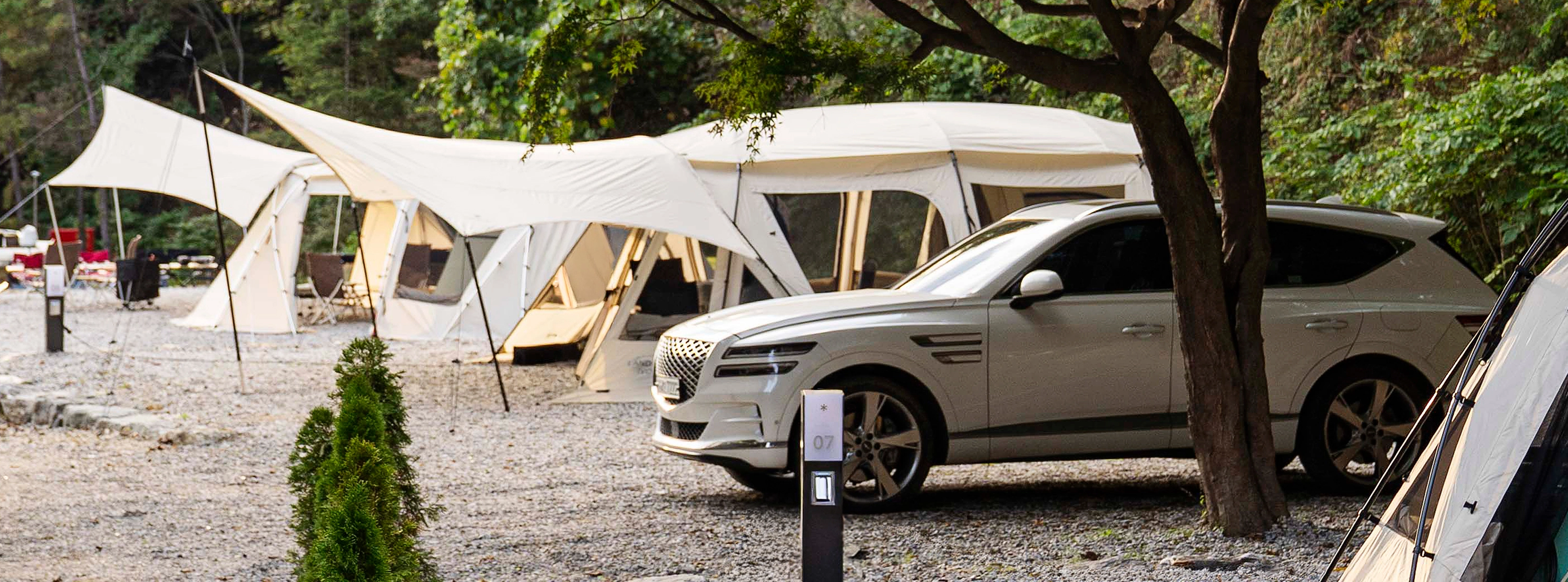 캠프필드 가장 안쪽, 고지대에 자리하고 있는 오토캠핑 구역은 한적한 자연 속에서 프라이빗하게 시간을 보낼 수 있는 구역입니다.